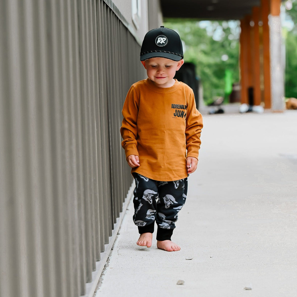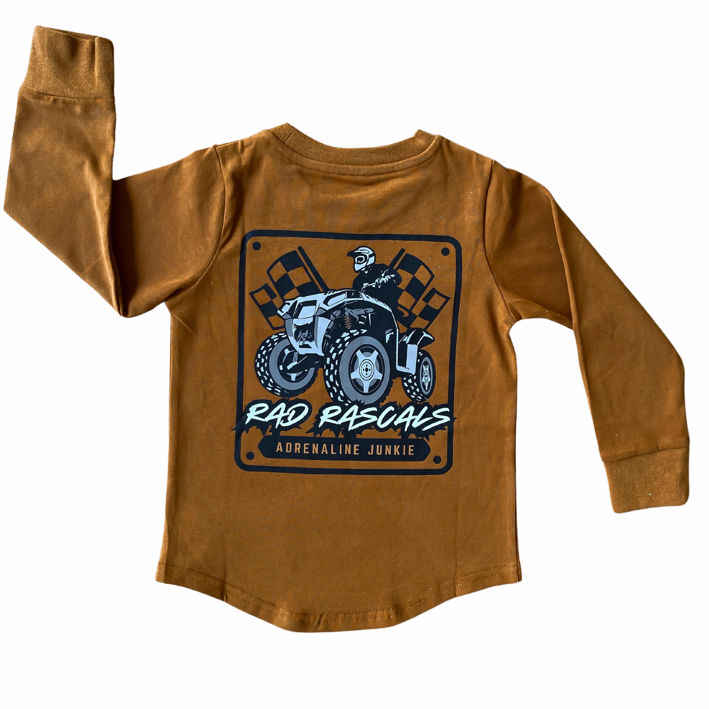 Dress your stylish kids in the most rad long sleeve t-shirts, sporting an epic graphic on the front and back. Made from the softest and most flexible material, these shirts are the perfect thickness to keep your little guys warm and offer a fantastic slim fit for added comfort during active play! Pairs perfect with our joggers.